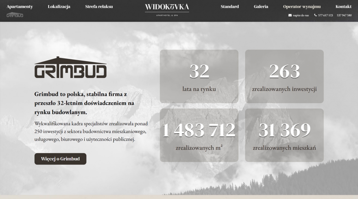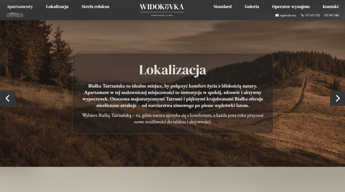 Strona Widokovka Białka Resort to elegancki serwis prezentujący ekskluzywne apartamenty w Białce Tatrzańskiej — łączy lokalny klimat Podhala z nowoczesnym standardem wykończenia (klimatyzacja, prywatne windy, widok na góry). Przejrzysta struktura (oferta apartamentów, strefa relaksu, operator wynajmu) oraz atrakcyjne wizualizacje budują wizerunek inwestycji premium i wspierają decyzję o zakupie czy inwestycji.