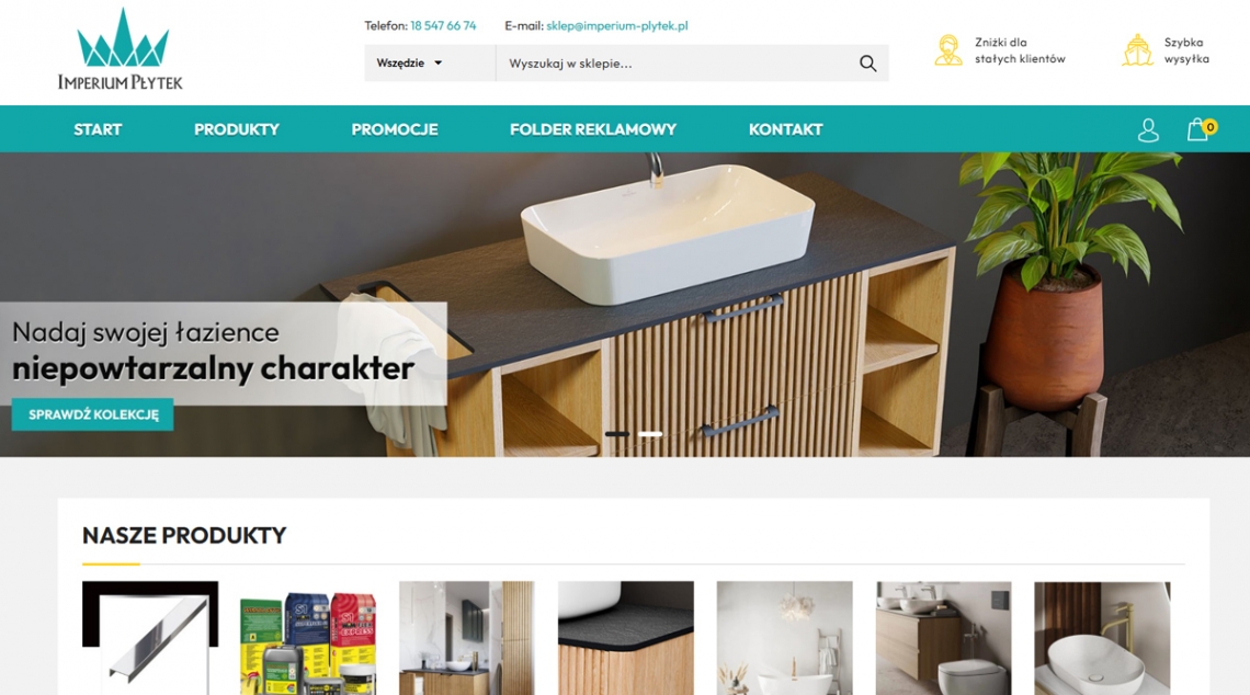 Imperium Płytek to rozbudowany sklep online i salon łazienkowy łączący ofertę ekskluzywnych płytek i wyposażenia łazienek (umywalki, wanny, armatura) z akcesoriami technicznymi (kleje, fugi, profile) oraz własnymi meblami łazienkowymi. Projekt wyróżnia się klarowną strukturą kategorii, estetyczną oprawą wizualną i naciskiem na kompleksową obsługę klienta — od inspiracji produktów po zakupy i doradztwo produktowe.