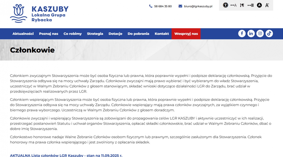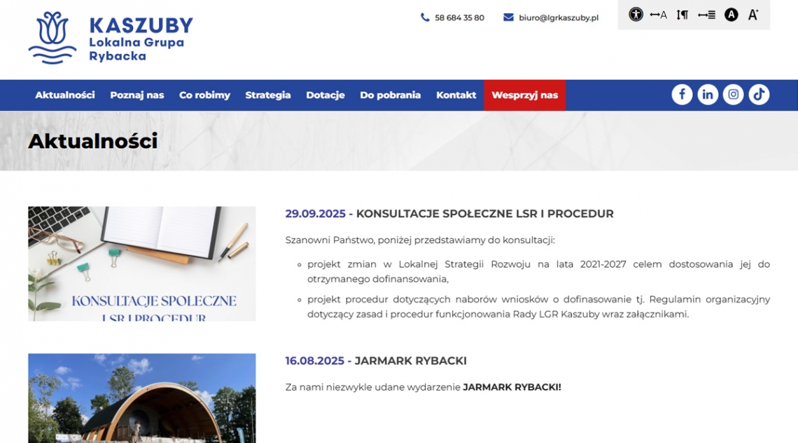 Strona LGR Kaszuby – NGO to funkcjonalny portal organizacji lokalnej wspierającej społeczności rybackie — wyróżnia się czytelnym układem sekcji „O nas”, „Misja”, „Projekty”, „Dofinansowania” i „Aktualności”. Projekt stawia na klarowną komunikację programu (LSR 2021–2027), dostęp do dokumentów i kontakt z biurem, wzmacniając transparentność oraz zaufanie mieszkańców i partnerów.