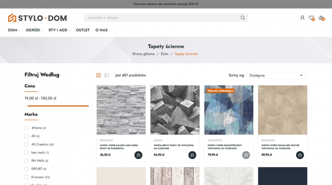 Stylo-Dom to nowoczesny sklep internetowy oferujący kompleksowy asortyment do domu, ogrodu oraz wykończenia wnętrz — od paneli i tapet po akcesoria montażowe i dekoracje. Projekt stawia na intuicyjne filtrowanie, czytelny katalog i koszyk zakupowy, a także sekcje poradnicze (blog), co wspiera użytkownika na każdym etapie decyzji zakupowej.